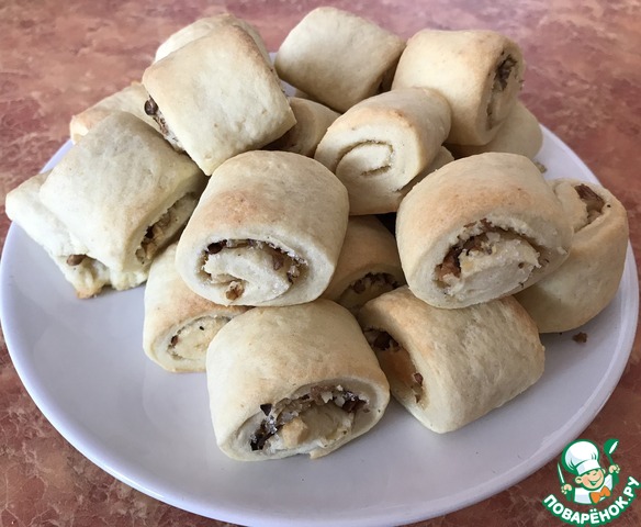 Каждую часть свернуть в рулет и нарезать небольшими кусочками