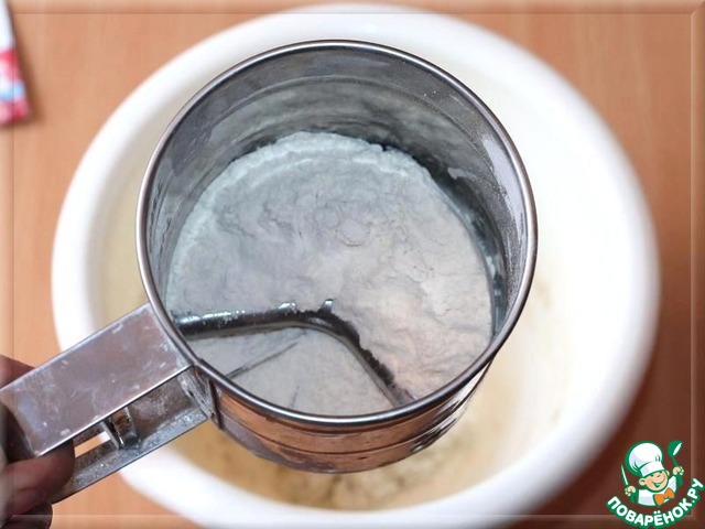 постепенно добавляя оставшуюся муку. Вымешивайте руками тесто 4-6 минут, пока оно не станет гладким и эластичным.