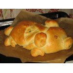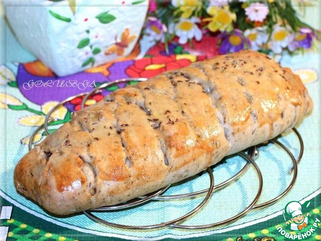 Затем смажьте пирог взбитым желтком, посыпьте семенами тмина. Выпекайте пирог при t 205 С в течение 25 минут.