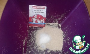 Насыпать в миску дрожжи и сахар