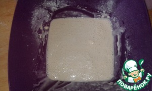Добавить опару и замесить мягкое тесто. Накрыть и оставить на 1 час