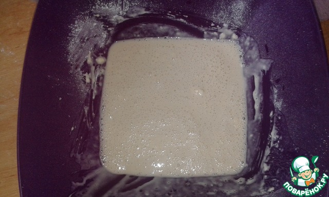 Добавить теплую воду, размешать. Оставить на 10 минут, пока смесь не запенится