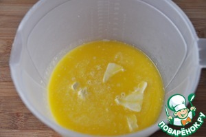 Нагреваем молоко, воду и сливочное масло в микроволновке приблизительно до 40 градусов.