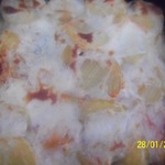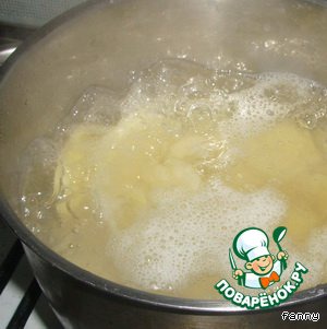 Картофель очистить и нарезать ломтиками толщиной 0,3 см. Положить в кипящую подсоленную воду, проварить 5 минут.