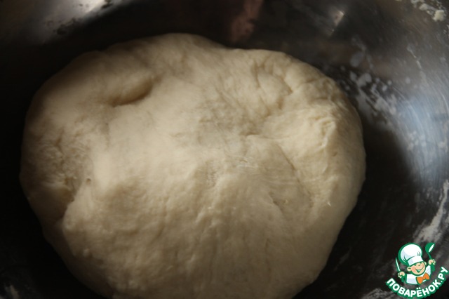 Заместить тесто. Смазать миску растительным маслом, положить в нее хорошо вымешанное тесто. Оставить на 1 час.