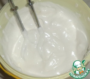 Приготовим глазурь. Охлажденные белки взбиваем в крепкую пену, затем подсыпаем сахар и взбиваем до загустения.