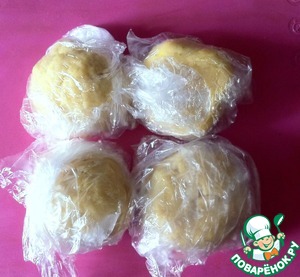 Разделить тесто на четыре шарика. Обернуть каждый пленкой и убрать в холодильник на несколько часов. Можно на ночь. Время приготовления указано без учета охлаждения теста. -