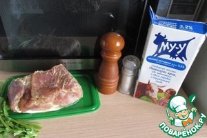 Вынимаем мясо из кастрюли. Молоко процеживаем через сито в отдельную кастрюльку. Пробуем молоко на соль, если надо, присаливаем. Отливаем полстакана молока и охлаждаем. Потом добавляем в стакан муку и размешиваем до однородности. Молоко в кастрюльке вновь ставим на огонь, добавляем мучную смесь и провариваем минут 5, это наш соус.