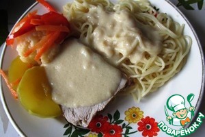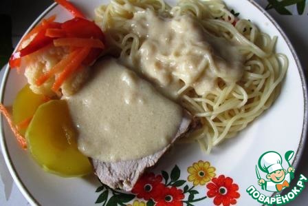 Просто 5 мин.отбивная с белым соусом.Например.Пардон и имхо.