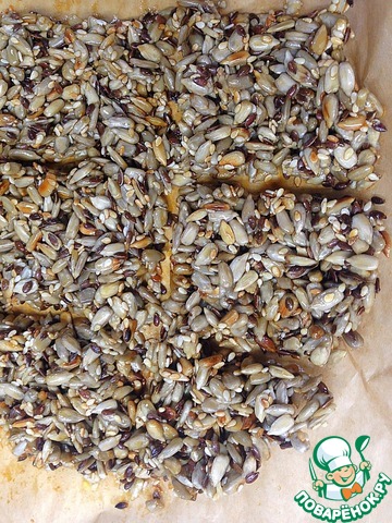 Также на среднем огне растапливаем сахар с мёдом. Добавляем кунжут, семечки и хорошо перемешиваем в течение двух минут, чтобы все семена оказались в карамели.