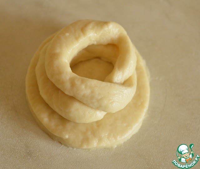 И, как бы складывая ее "книжечкой", укладываем на основу булочки.