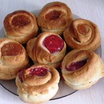 Теперь по клубнике свежей - я бы ее нарезала небольшими кубиками и припорошила крахмалом кукурузным, чтобы сок не сильно вытекал. Но клубника слишком водянистая, потому гарантий никаких! А вот вишня - другое дело! Тут булочки получатся отменные! Да и черника подойдет с черной смородиной! Пробуйте!
