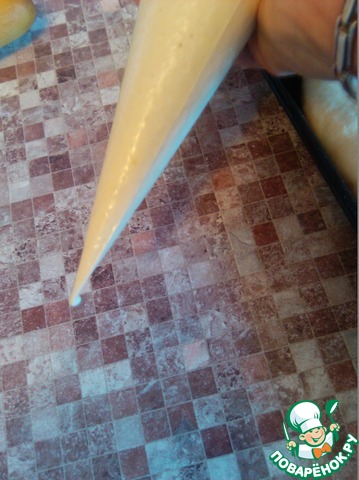 Перекладываем в кондитерский мешок ( одноразовый), срезаем уголок чтобы была маленькая дырочка