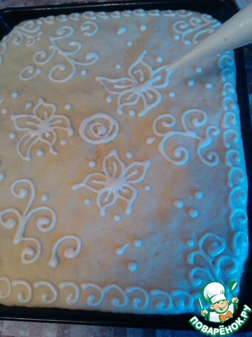Этим пресным тестом расписываем наш пирог. Можно например написать письмо Деду Морозу и так отправить. )))