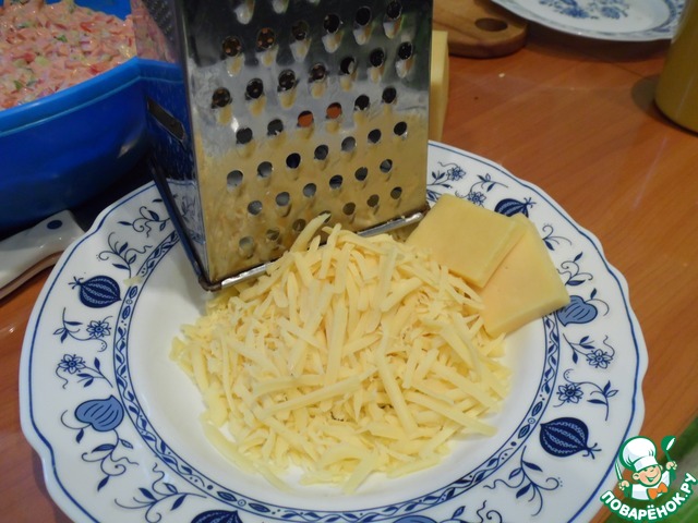 Натираем сыр на крупной терке желательно "Гауда" или любой мягкий сыр
