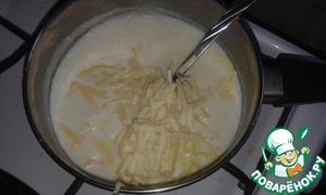 Добавить натертый на крупной терке плавленный сыр и подержать на маленьком огне еще несколько минут. Если сыр полностью не расплавится ничего страшного. Соус остудить