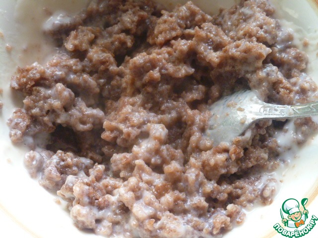Остальной бисквит поломала, перемешала с горячим заварным кремом на 0.5 л молока.