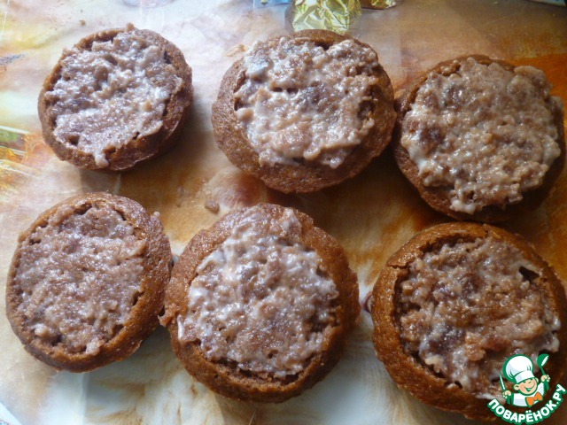 Аккуратно, чтобы не повредить рисунок, с помощью ножа и чайной ложки, выбрать серединку бисквита.