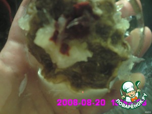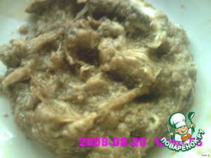 Мякоть измельчаем в блендаре, или просто рубим ножом или давим вилкой (толкушкой).