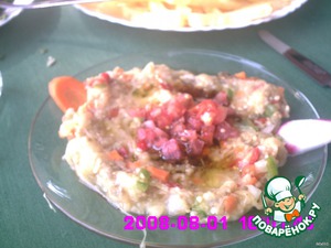 Выкладываем на тарелку, поливаем маслом, украшаем свежими или солеными овощами, зеленью.