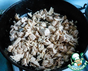 • Филе нарезаем полосками. Рис ставим варить. Можно капнуть в рис сок лимона, что бы он было более рассыпчатым.