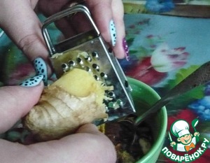 • Натираем немного имбиря, на глаз примерно, там меньше чем четверть чайной ложки. Перемешиваем.