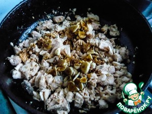 • Добавляем к рыбе, перемешиваем. Тушим на очень медленном огне под крышкой, пару минут.