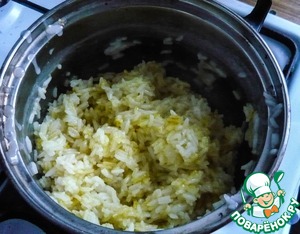 • Вынимаем из риса бадьян. Присыпаем его куркумой, что бы он приобрел золотистый цвет.