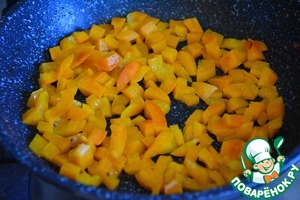 Перец нарезать кубиком, обжарить на растительном масле. Остудить