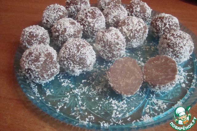 Обваливаем пирожные в кокосовой стружке (или в какао, или в кондитерской посыпке, или в кунжуте и т. п.) -
