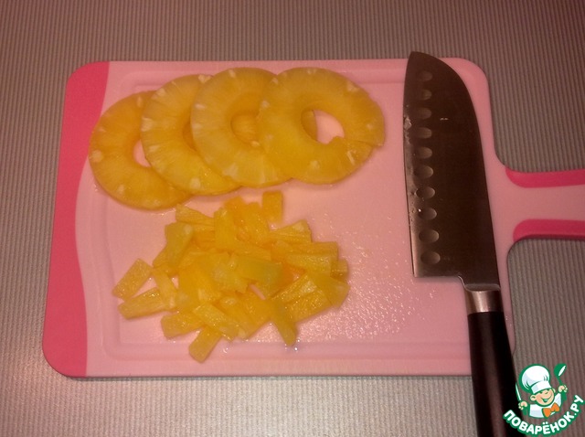 - Ананас (любые, свежие чуть дольше готовить) — 200 г