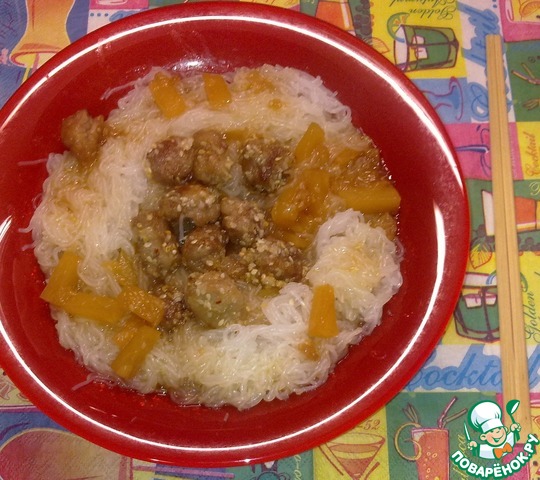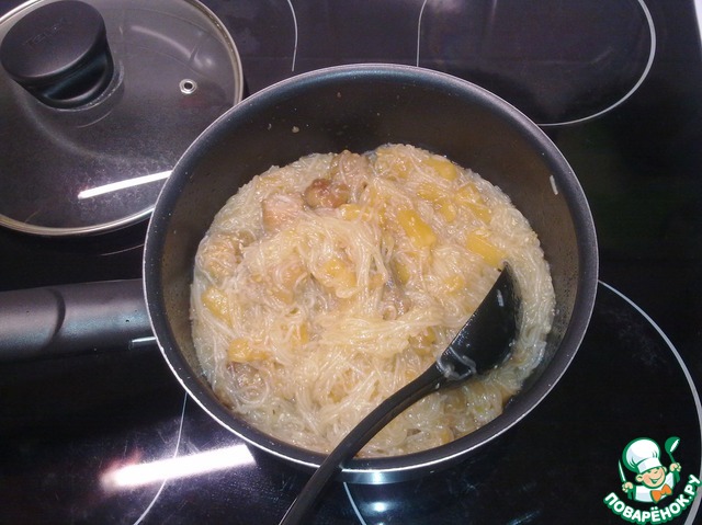 Рецепт «Фунчоза со свининой и ананасами в кисло-сладком соусе»:
