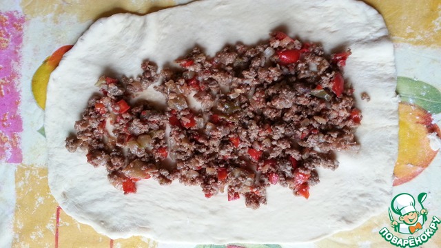 Тесто смазать подсолнечным маслом. На начинку:в одну я посыпала натёртым сыром, а в другую взбитым вилкой яйцом.