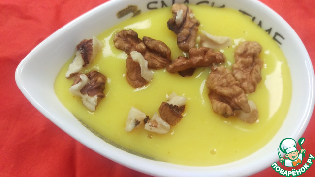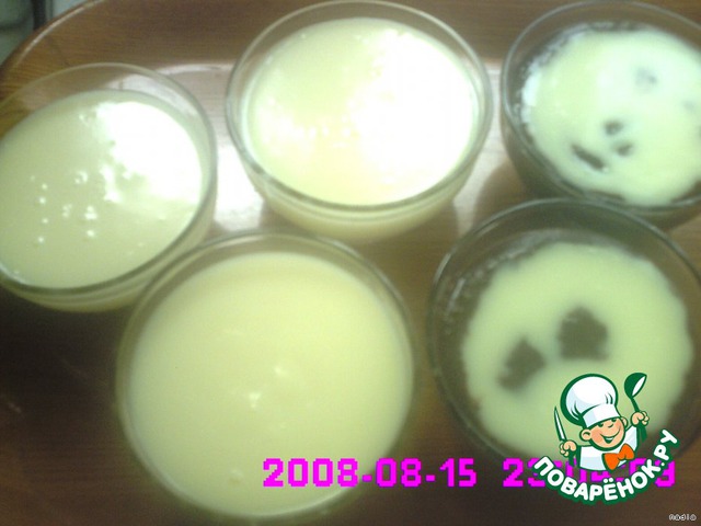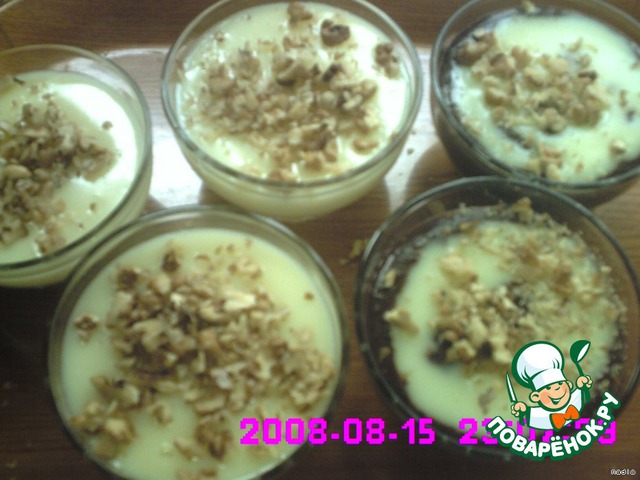 Разливаем по вазочкам, посыпаем орехами. Остывший кастар ставим в холодильник, для охлаждения.