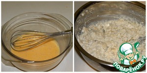 В отдельной посуде взбиваем 2 яйца. Добавляем их в творог, все еще раз перемешиваем и добавляем 6 ст. ложек сливок 20%. И еще раз перемешиваем, главное чтобы не было комочков.