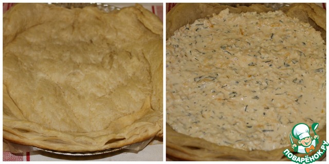 Сверху все посыпаем оставшимся сыром. Выпекаем тарт в разогретой духовке 30 минут.