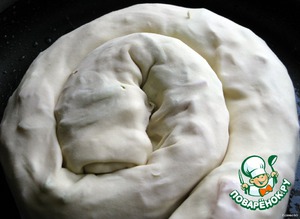 Свернуть тесто с начинкой в рулет и выложить в огнеупорную форму, смазанную сливочным маслом, в форме "улитки".