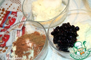 Во вторую часть добавляем 2 ст. л. варенья из черноплодной рябины и 1 ст. л. муки. Перемешиваем. Получаем творожную массу для ягодных шариков.