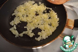Очищенный репчатый лук помыть, мелко нарезать, переложить на нагретую сковороду и спассеровать в оливковом масле до золотистого цвета. Кто лук не любит, лучше готовить без него, потом он будет явно чувствоваться.