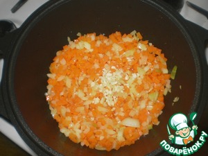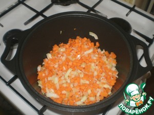 Пассеруем овощи в растительном масле в глубокой сковороде или толстостенной кастрюле.