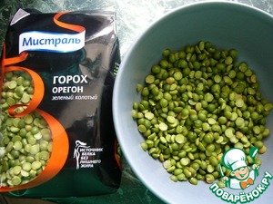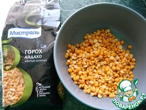 - Горох (0,5 стакана гороха АЙДАХО желтый колотый ТМ"Мистраль", 0,5 стакана гороха ОРЕГОН зеленый колотый ТМ"Мистраль" ) — 1 стак.