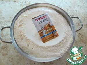 • Муку просеять вместе с дрожжами от САФ-МОМЕНТ для сдобы (использовала всю пачку дрожжей).