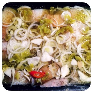 - Рассол (рассчитать так, чтобы полностью покрыло рыбу ) — 300 мл
