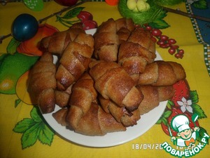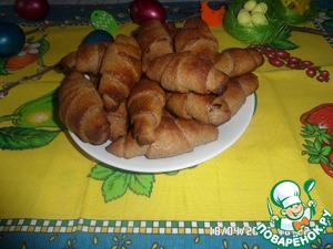 Выкладываем рогалики на противень, застеленный пергаментом. Выпекаем 20-30 минут при 150-180 градусах. За 10 минут до окончания выпечки смазать желтком.