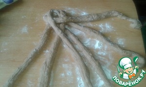 Разделить тесто на 6 частей и из каждой сделать жгут