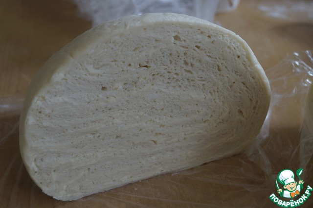 Таким тесто становится после охлаждения, если его разрезать пополам.