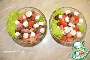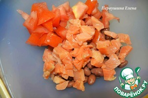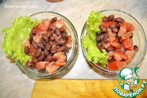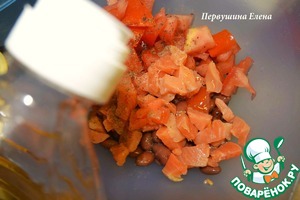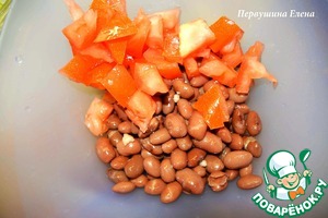 Фасоль положить в отдельную чашку. Добавить нарезанные кубиками помидоры (без семян) и