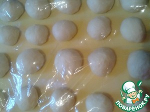 Тесто разделить на порции: я формую 10 маленьких шариков и 10 еще чуть поменьше. -