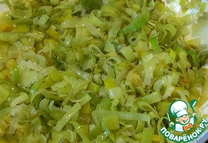 Слегка обжарю лук-порей – у него мягкий вкус, который хорошо сочетается с неяркими тресковыми рыбами.