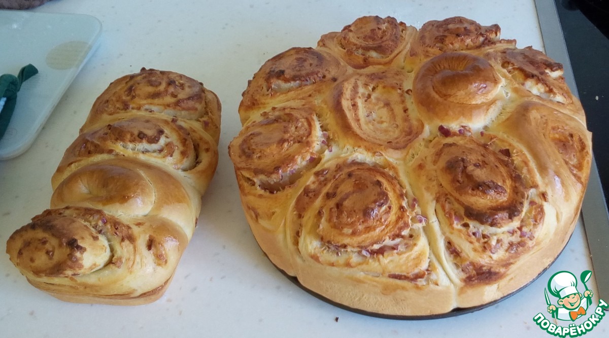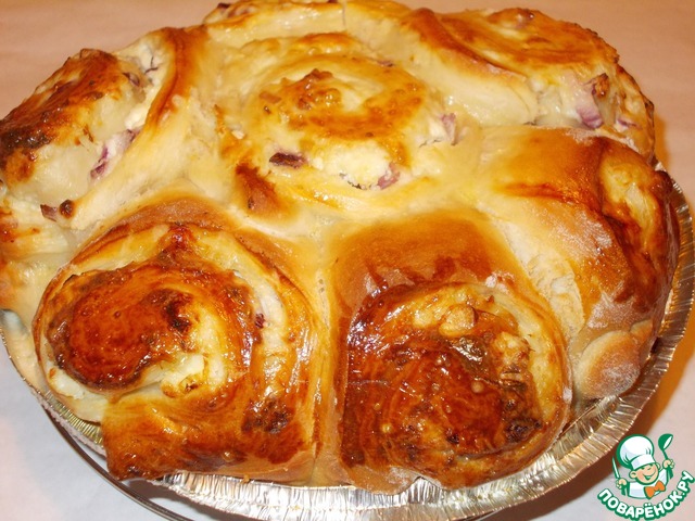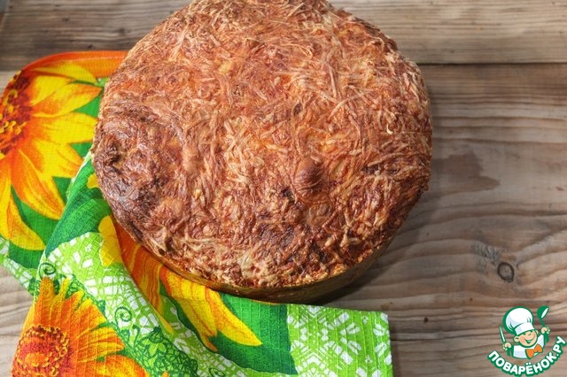 Даже не смотря на то что тесто у меня не всегда получается, пирожок получился румяным красавцем. На вкус нежный и сыыыыырный. я правда часть сделала как пампушки с маслицем и чесночком)))
